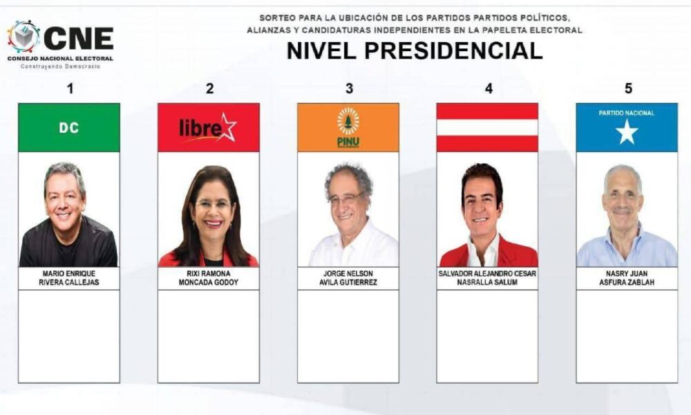 El Consejo Nacional Electoral (CNE) de Honduras celebró este viernes el sorteo que determinó la posición que ocuparán los candidatos presidenciales en la papeleta electoral para...