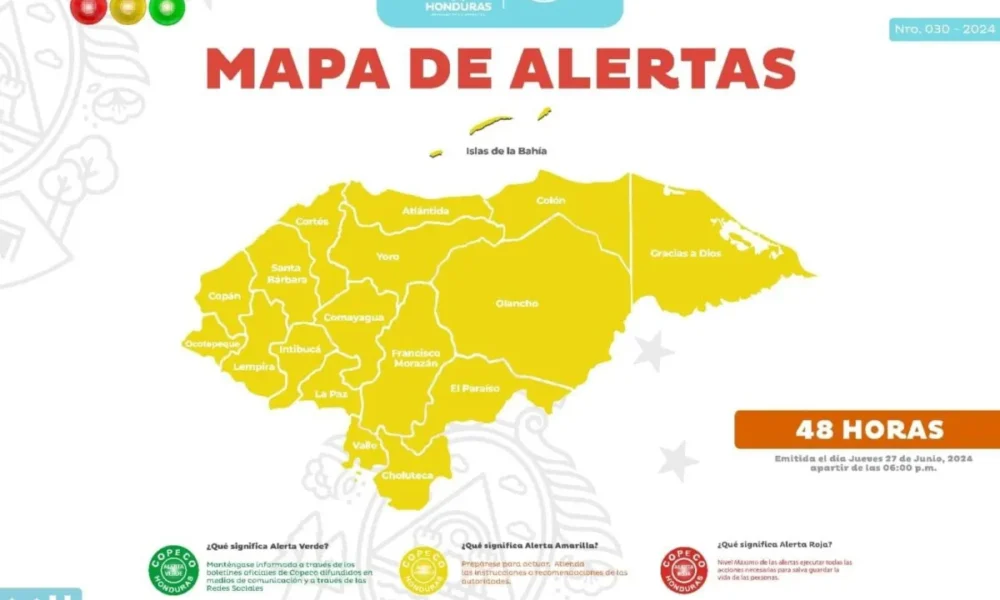 La Secretaría de Estado en los Despachos de Gestión de Riesgos y Contingencias Nacionales (COPECO), determinó dejar en Alerta Amarilla a todo el país, por un...