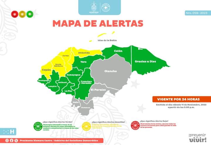 Por las constantes lluvias, suelos húmedos y daños, la Secretaría de Estado en los Despachos de Gestión de Riesgos y Contingencias Nacionales, mantiene en alerta amarilla...