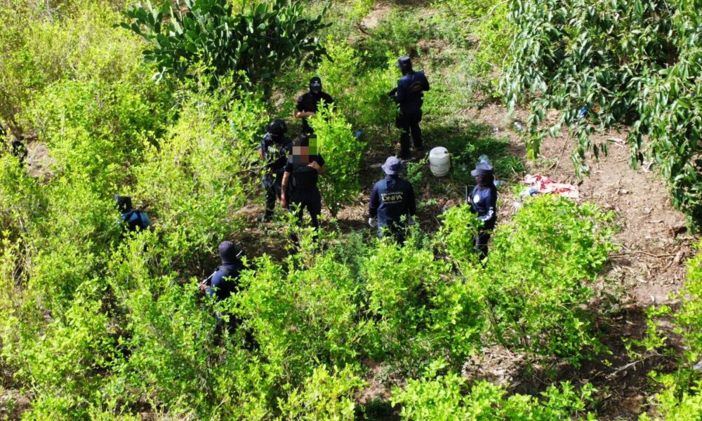 En una operación de alto impacto, la Dirección Nacional Policial Antidrogas (DNPA) localizó y aseguró una extensa plantación de arbustos de supuesta hoja de coca, junto...