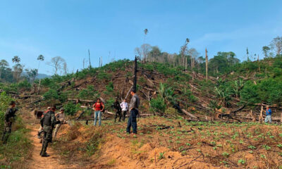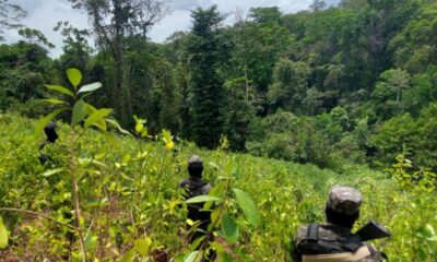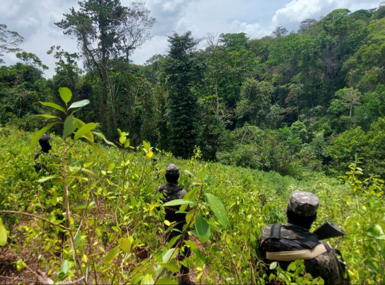 Las Fuerzas Armadas de Honduras, por medio del escudo naval y terrestre, aseguró 18 manzanas de terreno cultivadas con más de 107,000 arbustos de supuesta hoja...