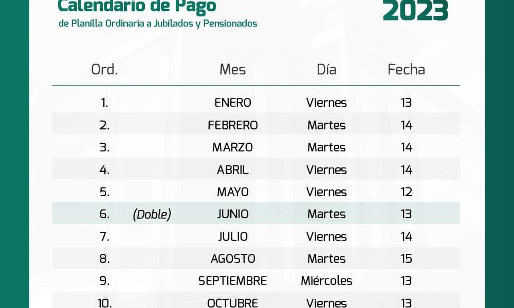 Nacional. Calendario con las fechas de pago a los docentes jubilados y pensionados durante el presente año.