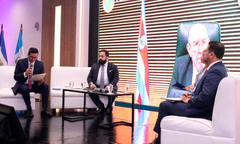 Los presidentes de los Poderes Legislativos de Honduras, Luis Redondo; Guatemala, Nery Ramos y Costa Rica, Rodrigo Arias, participan este martes en el foro sobre las...