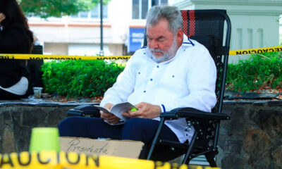 El precandidato a la alcaldía de San Pedro Sula por el partido Liberal, Roberto Contreras, protestó frente al portón de la Universidad Nacional Autónoma de Honduras...