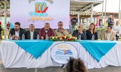 El ministro de Educación, Daniel Esponda, junto al designado presidencial Renato Florentino, declararon al municipio número 100 libre de analfabetismo en el departamento de La Paz....