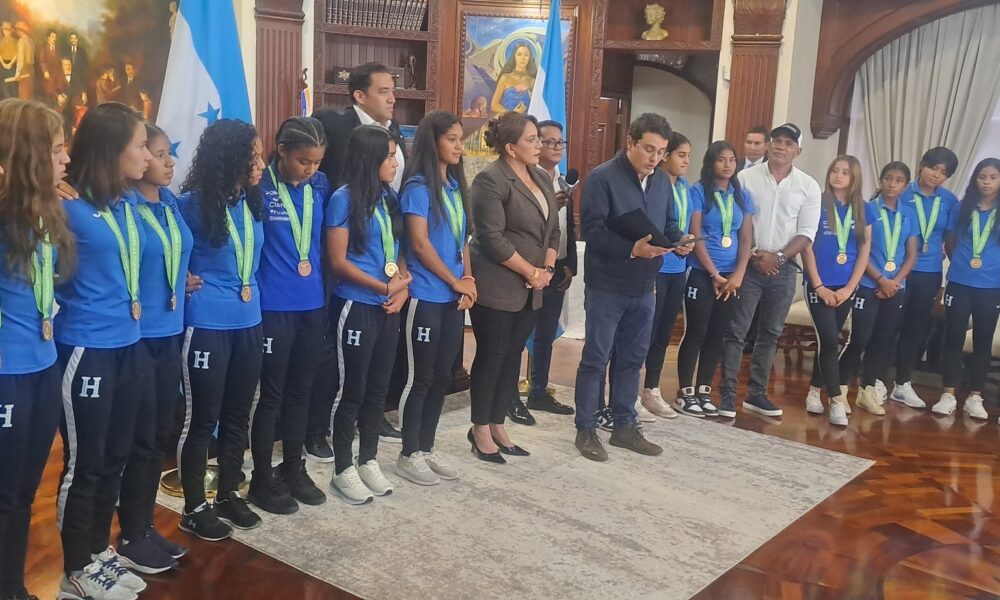 La presidenta de Honduras, Xiomara Castro, premió a as futbolistas de la selección femenina que se coronaron campeonas de la Liga B, del Campeonato de Niñas...