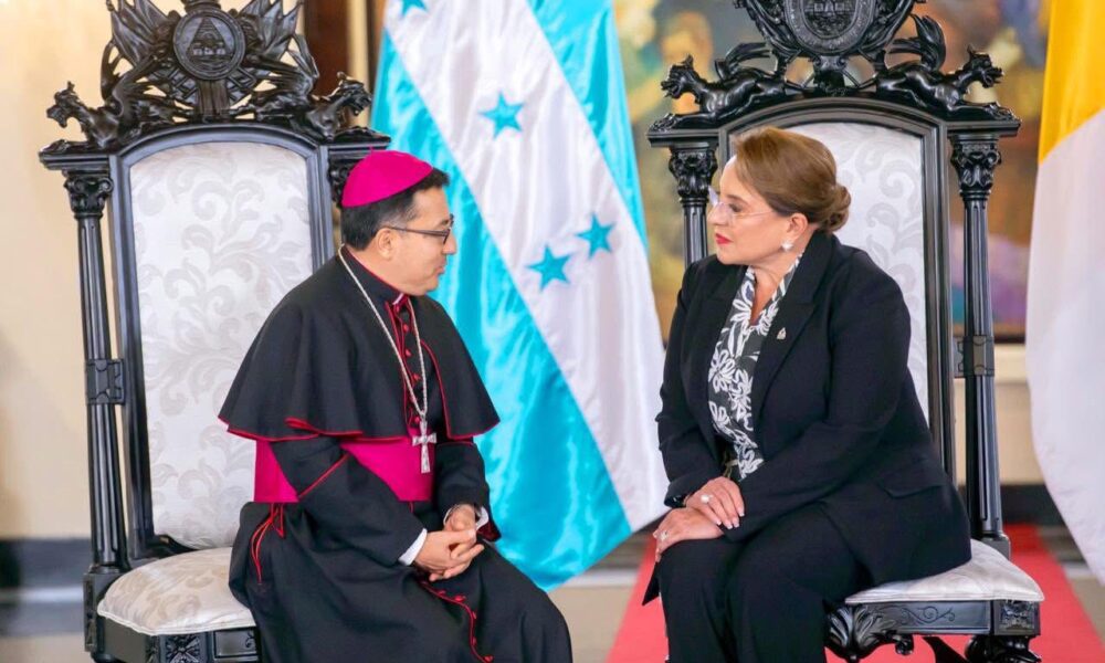 La presidenta de la República, Xiomara Castro de Zelaya, recibió este día en Casa de Gobierno las Cartas Credenciales del Reverendísimo Monseñor Simón Bolívar Sánchez Carrión,...