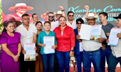 La Presidenta de Honduras, Xiomara Castro en un acto histórico en los municipios de Las Flores y Lepaera, Lempira, entregó 995 títulos de propiedad a familias...