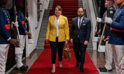 La presidenta Xiomara Castro junto al secretario privado Héctor Zelaya y la vicecanciller de Cooperación y Promoción Internacional, Cindy Rodríguez, llegaron a Santo Domingo, República Dominicana,...